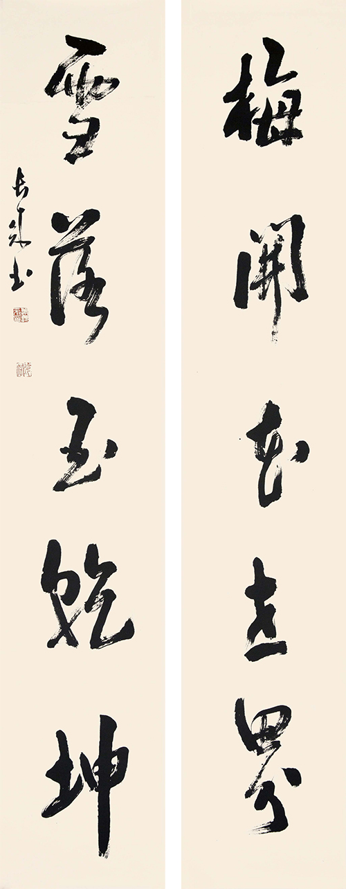 行草·梅开雪落对联